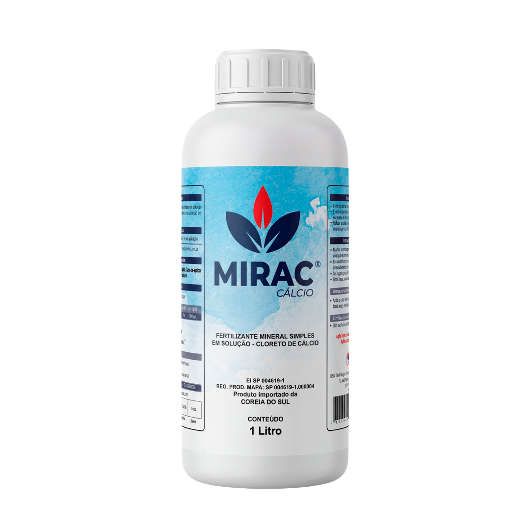 O Mirac Cálcio é um fertilizante mineral simples em solução, formulado para o fornecimento de cálcio de alta solubilidade via aplicação foliar.